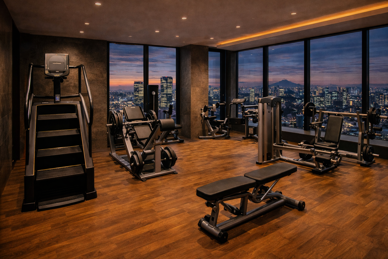 최신 프리미엄 운동 장비와 탁 트인 도심 전망을 동시에 즐길 수 있는 피트니스 센터입니다. 전문적인 트레이닝 환경과 세련된 공간에서 건강하고 활기찬 하루를 시작해보세요.